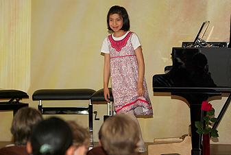 Schon ganz selbständig und routiniert spielt Bettina (9 Jahre) ein Stück mit Pedal.