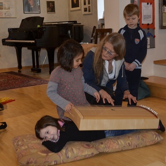 Louisa, Ella und Raphael haben bis zum Ende der Musikstunde zusammen mit den staunenden Kolleginnen viel Spaß.